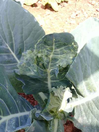 Alguém saberia me dizer o que são essas manchas que surgiram em minha couve? Ela só aparece nas folhas mais velhas, em algumas chega a acumular essa coisa branca em cima das folhas.