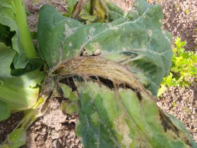 Folha da muda da couve manteiga apareceu essas listras como um caminho, arranquei por precaução, na parte de baixo da folha não tem nada ta limpo é só em cima.