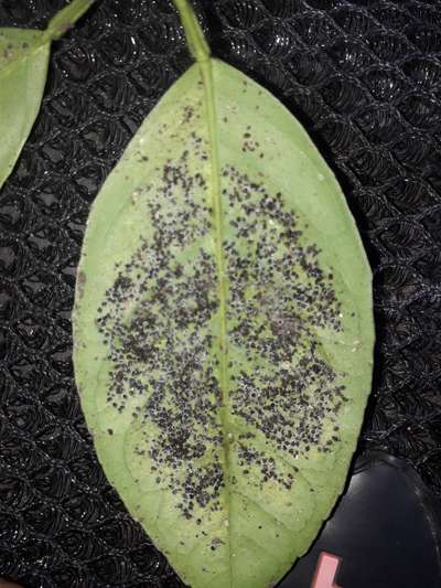 Olá! Sua planta está com mosca negra. Para o controle , faça uma poda de limpeza, removendo as folhas mais atacadas. Além disso, aplique uma calda de pimenta com alho ou óleo de neem. Espero ter ajudado.