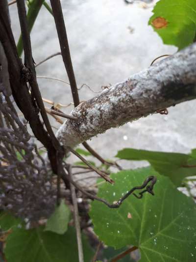 Se alastrou no pé de maracujá e agora os frutos estão secos e murchos como pode ver na foto tem um pé de uva próximo e não está infectado