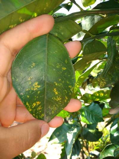 Saiba mais sobre o PlantixBoa noite! Essas são as laranjeiras da roça do meu primo, as folhas estão com manchas prestas e amareladas. Outra folhas estão com dificuldade de se desenvolver normalmente.