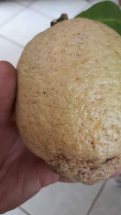 Hi Romulo Rezende .Citrus fruit infestation is Scale Insects.For control insect pest management fallow below measures. Control To get rid of scale insects prune and dispose of infested branches, twigs and leaves. When scale numbers are low they may be rubbed or picked off of plants by hand. Dabbing individual pests with an alcohol-soaked cotton swab or neem-based leaf shine will also work when infestations are light. Commercially available beneficial insects, such as ladybugs and lacewing, are natural predators of the young larval or “crawler” stage. Organic pesticides, like insecticidal soap and d-Limonene can also be used to kill the larvae. However, these products have very little persistence in the environment, so several applications during egg-hatching will be required for effective control. Azamax contains azadirachtin, the key insecticidal ingredient found in neem oil. This concentrated spray is approved for organic use and offers multiple modes of action, making it virtually impossible for pest resistance to develop. Best of all, it’s non-toxic to honey bees and many other beneficial insects. Horticultural oils and other safe, oil-based insecticides work by smothering insects and will control all pest stages, including adults which are protected from most other insecticides by their armor coverings. Fast-acting botanical insecticides should be used as a last resort. Derived from plants which have insecticidal properties, these natural pesticides have fewer harmful side effects than synthetic chemicals and break down more quickly in the environment.