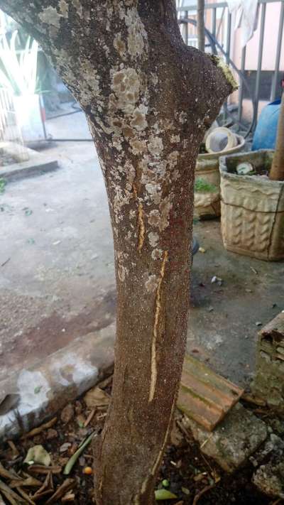 O meu pé de limão também está com rachaduras e escorrendo um líquido transparente, ficou assim depois que coloquei farelo de osso bem próximo à raiz e acho que queimou um pouco .