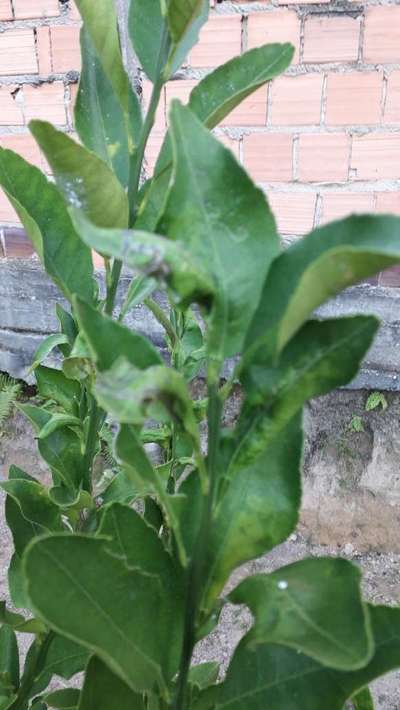O fruto(limão cravo) ficou com essa aparencia, algumas folhas apresentam manchas pretas(e imagina). Mas o que mais intrigou foi a coloração do limão que ficou com esse aspecto enrugado.