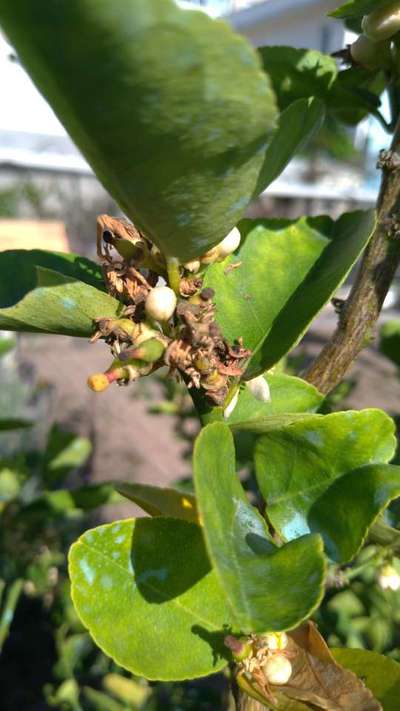 Olá Leandro Soares uma possibilidade é de estar ocorrendo doença fúngica nas flores.. veja em Antracnose dos Citros algumas dicas para controle