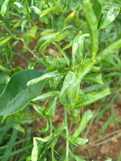 Folhas enroladas e enrrugadas. No pé de limão