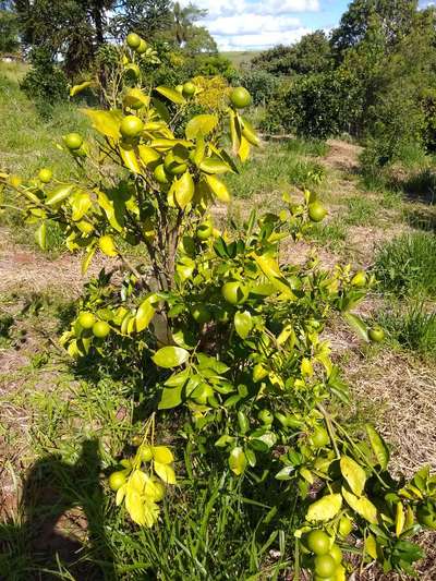 Saiba mais sobre o PlantixAs folhas da laranjeira estão amarelando e os frutos não crescem.