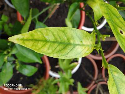 Folha de cítrica que tem a nervura em cor mais oi menos normal mas os extremos estão muito claros. Qual é o problema e como se pode resolver?