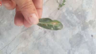 Saiba mais sobre o PlantixAs folhas da rosa do deserto estão enrugadas e com pontos marrom claro e escuro