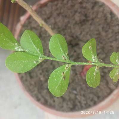 Tenho uma árvore de pequeno porte, ainda bem pequena, em um vaso, e percebi que abaixo das folhas dela e em todos os galhos há estes pontos brancos e esses pontos maiores marrons. Passei um pincel levemente e vi que esses pontos saem (acredito que sejam insetos), mas estão espalhados por todos os galhos. O que é e como tratar?
