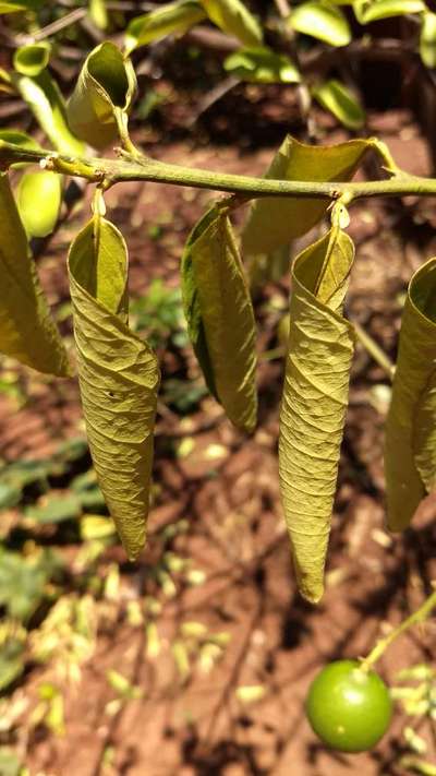 O limoeiro está com fruto em crescimento, porém, as folhas estão secando e "enrolando". O que pode ser?