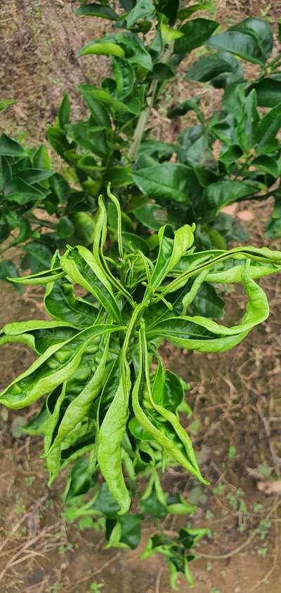 As folhas novas da tangerina estão todas enroladas