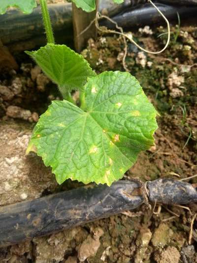 Saiba mais sobre o PlantixMeu pepino esta com dez dias de plantado sera que pode ser algum tipo de fungo essas manchas ?