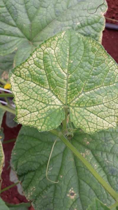 Comecou a aparecer essas manchas em Volta das folhas do meu pepino o que pode ser ?