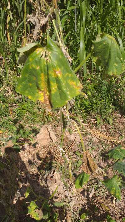 Comecou a aparecer essas manchas em Volta das folhas do meu pepino o que pode ser ?