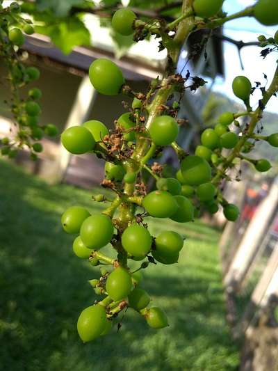 Olá. Pode ser devido ao desenvolvimento de fungos no cacho, como o Míldio da Videira .. clique na para acessar mais info da doença