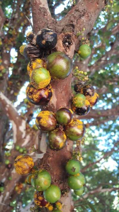 Olá Roseclair Boche essa é a ferrugem das mirtáceas, comum em jabuticabeiras... Para controle deve-se evitar o uso exagerado de adubos nitrogenados, fazer uma poda de limpeza e aplicar calda bordalesa a cada 10-15 dias.