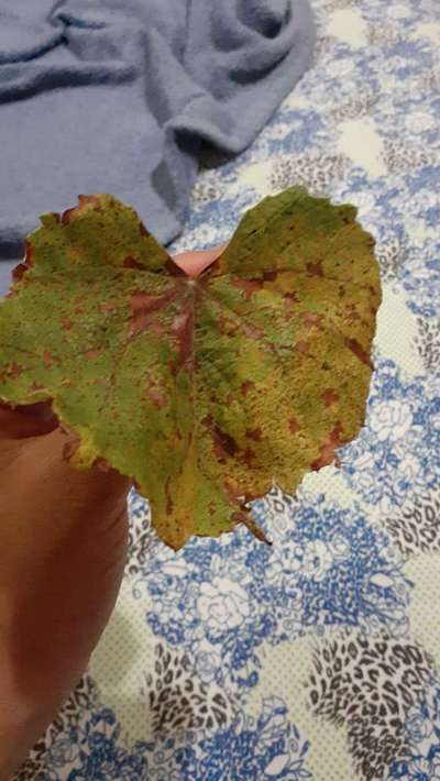 Quero saber o que pode está causando isso nas folhas da parreira de uva; As folhas vai ficando amarelas e caiem