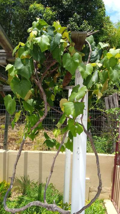 Minha parreira esta doente porque eram 2 e se encontravam. Outra secou totalmente e esta estagnou sem dar frutas e sem desenvolver sendo que já tem aproximadamente uns 10 anos de idade ela e sempre dava òtimas frutas saudáveis e este ano ficou assim