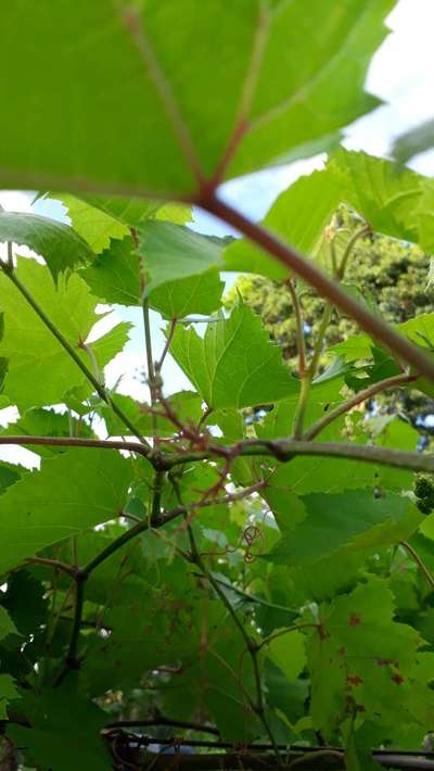 Tem ferrugem nas folhas eu podei na lua minguante de dezembro brotou,esta florescendo e não esta segurando nenhuma isso aconteceu no ano passado também no mês de agosto só que podei na lua Nova e aconteceu o mesmo. Alguém pra me ajudar porfavor. Não sei wual uva ela é ganhei um galho plantei e e fomou rápido.