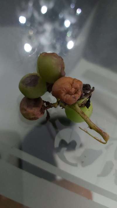 Saiba mais sobre o PlantixOs frutos crescem pretos, ficam marrons e murchando. Alguns cachos nem crescem e todos pretos.