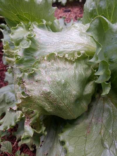 Manchas marrons nas extremidades das folhas do meio da alface americana