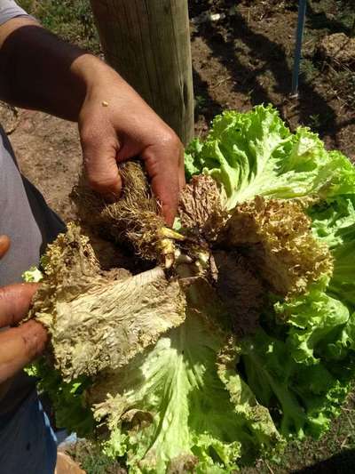 Tenho uma horta de alfaces e em poucos dias todos os pés ficaram manchados como na foto. A terra é adubada e possui sombrite pra na queimar as folhas no sol