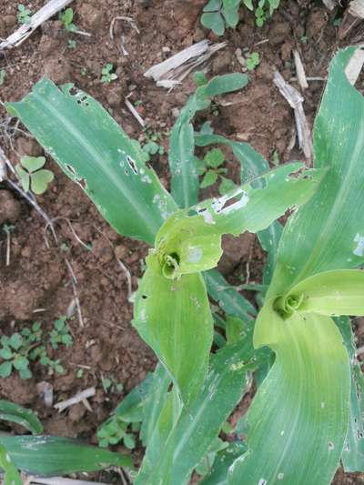 Todos os meus brotos de milho estão assim, quando olho de perto parece que tem uma mosquinha comendo. O que pode ser??