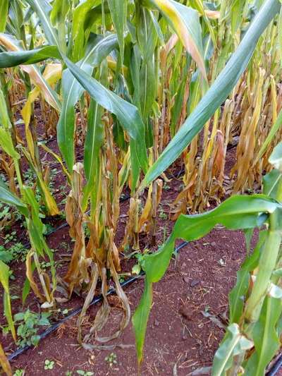 O milho cresce viçoso, quando começa a floração começa a requeima,vale lembrar que é irrigado.