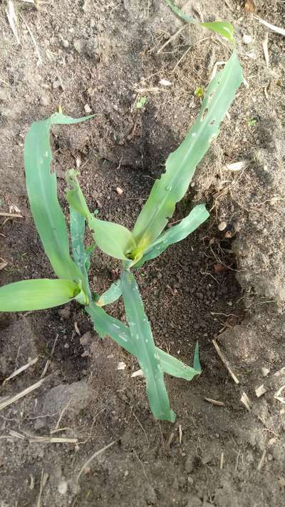 Nilkson Costa esses furos nas folhas são de lagartas, vc só vai encontrar as lagartas se vc retirar um pé e ir verificando no seu interior, nessa fase do milho elas são bem minúsculas