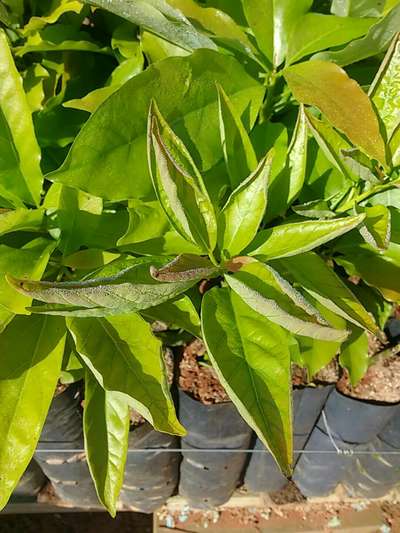 Folhas enrolando pra dentro em alguns pés.