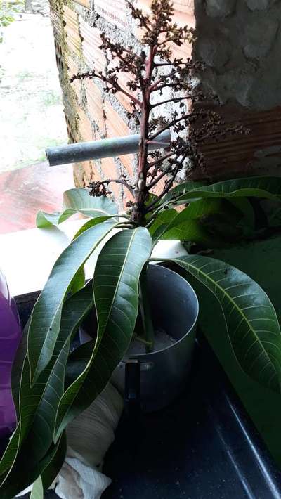 As folhas da mangueira estão queimadas, e os frutos igual, com uma casa grossa