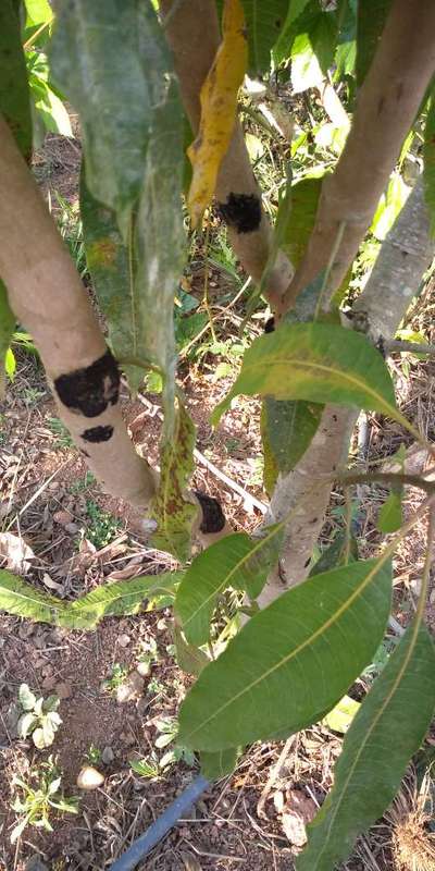 Essa mancha preta no tronco da mangueira