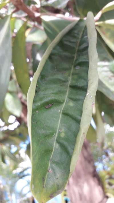 São folhas do pé de jambo, encolhem e depois amarelam e caem