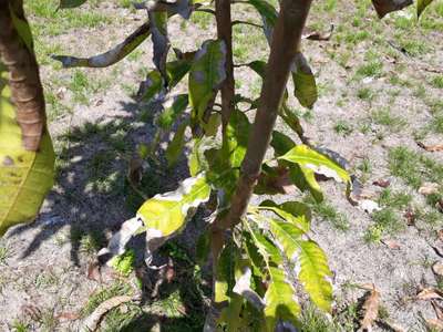 As folhas da mangueira estão queimando nas pontas