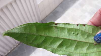 Alguém por favor sabe o que é isso na folha de manga, e branco e quando passa os dedos solta um pó?