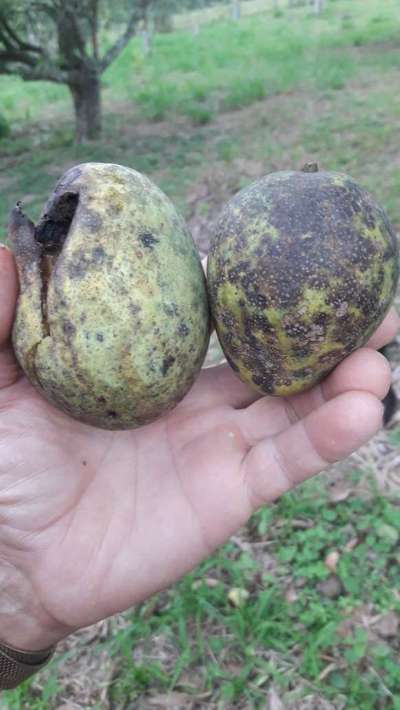 As mangas ficam manchadas, pretas, as folhas tb, e as mangas caem ainda pequenas