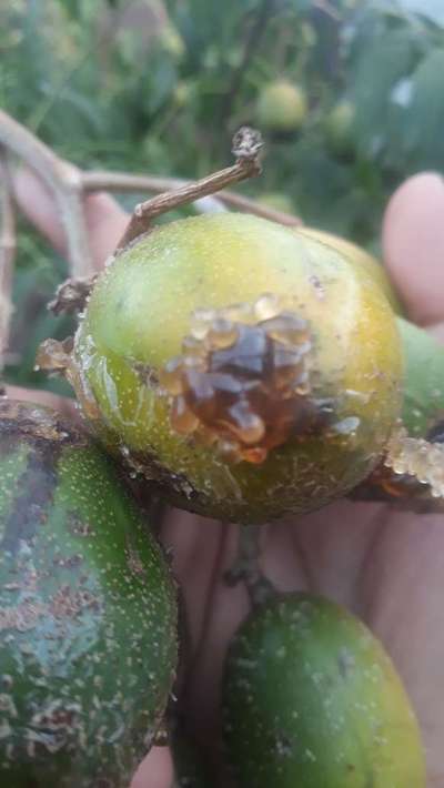 Essa fruta é um caja manga esta soltando esse liquido e caem