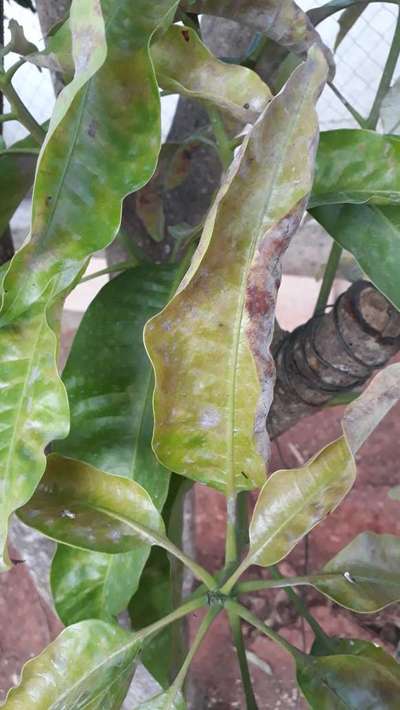 Concordo com os colegas .. é Oídio da Manga Aplicações de enxofre tbm pode ajudar no controle