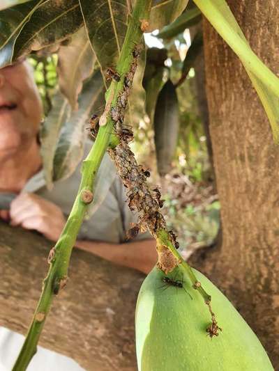 Saiba mais sobre o PlantixEstá cheio desses insetos, onde vi as formigas atacando eles. Vi uma espécie de cigarrinha botando ovos na haste que segura o fruto.