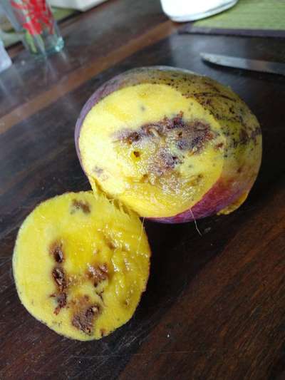 A partir de um tempo todas as mangas de minha mangueira no Cosme Velho, Rio de Janeiro ficaram estragadas, festa forma. Isso é mosca? Apareceu furos nas mangas e às vezes vejo larva. No começo estavam ótimas, não tinham nada.