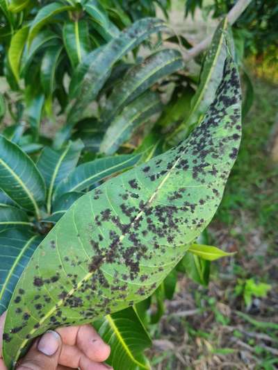 Meus pés de manga estão com as folhas mais antigas escuras , parece um tipo de fungo. Alguém já resolveu isto?