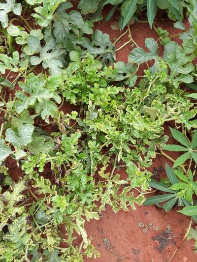Olá! Desconfio de virose. No link Vírus do Mosaico da Melancia tem mais informações sobre a virose.
