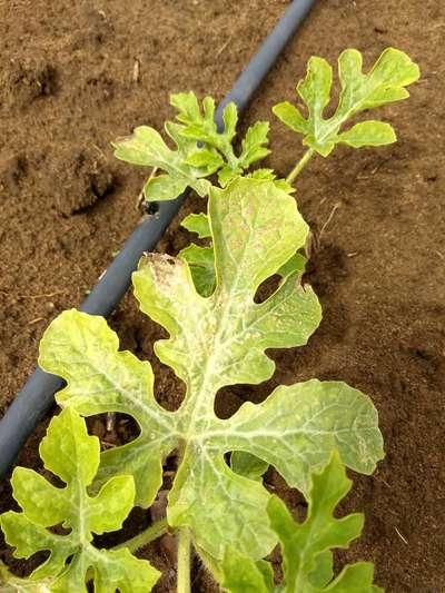 As folhas de melancia está desse jeito. O que pode ser?
