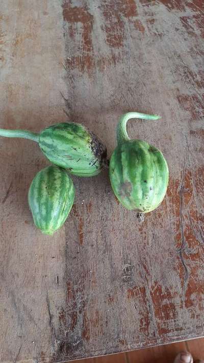 Olha pelos frutos me parece melancia..se for isso mesmo o problema q esta ocorrendo isso ai são 2... *adubaçao de cobertura causa o aborto de alguns frutos.. ** doença antracnose da melancia deixa os frutos muchos e enrugado. .. Confirme ai.. E mande fotos das folhas próximo ao caule da planta para analisarmos..