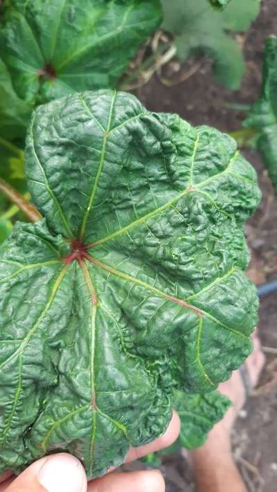 Bom dia! Vcs sabem porq meus pé de quiabo, estão ficando assim, com a folha embolada?