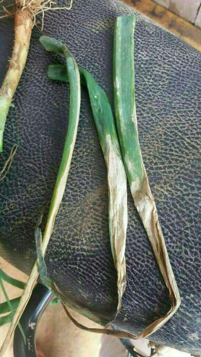 Bom dia, minha cebolinha está se desenvolvendo normal, porém apresenta umas manchas brancas por toda parte. Alguém sabe informar o que ocorre com ela?