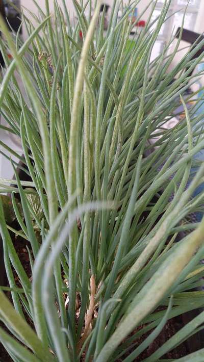Bom dia, minha cebolinha está se desenvolvendo normal, porém apresenta umas manchas brancas por toda parte. Alguém sabe informar o que ocorre com ela?