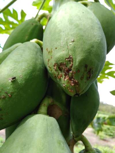 Olá pessoal boa tarde.. alguém poderia me ajudar a identificar o que está acontecendo com meu mamoeiro?