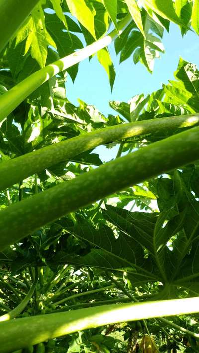 O mamoeiro é bem pequeno, cerca de 30cm, e algumas folhas estavam assim. Eu arranquei todas as folhas assim!